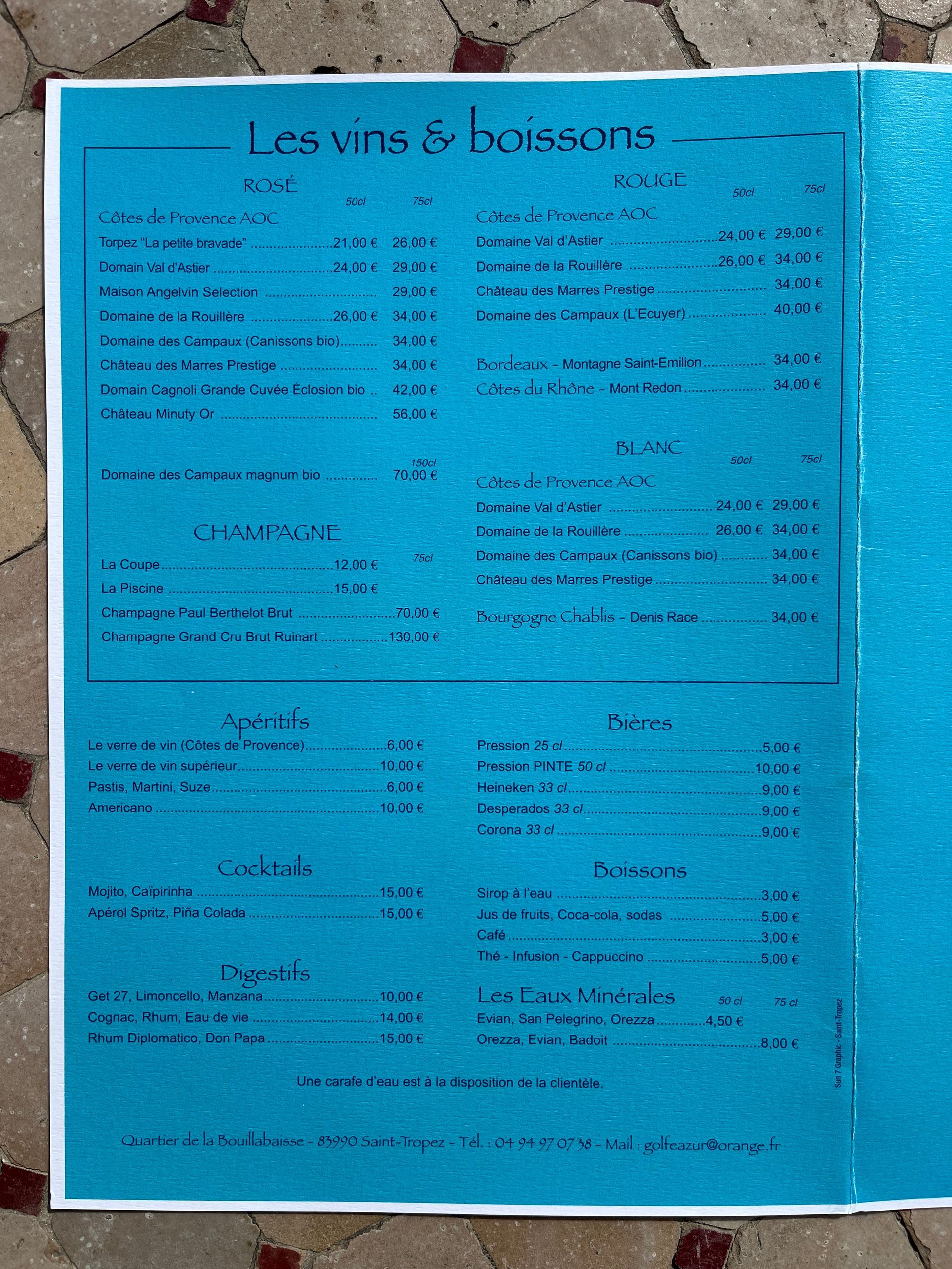 Consultez la carte des vins et des boissons que nous vous proposons à Saint-Tropez